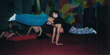 Oleg doing a back hand spring into a back flip straight body